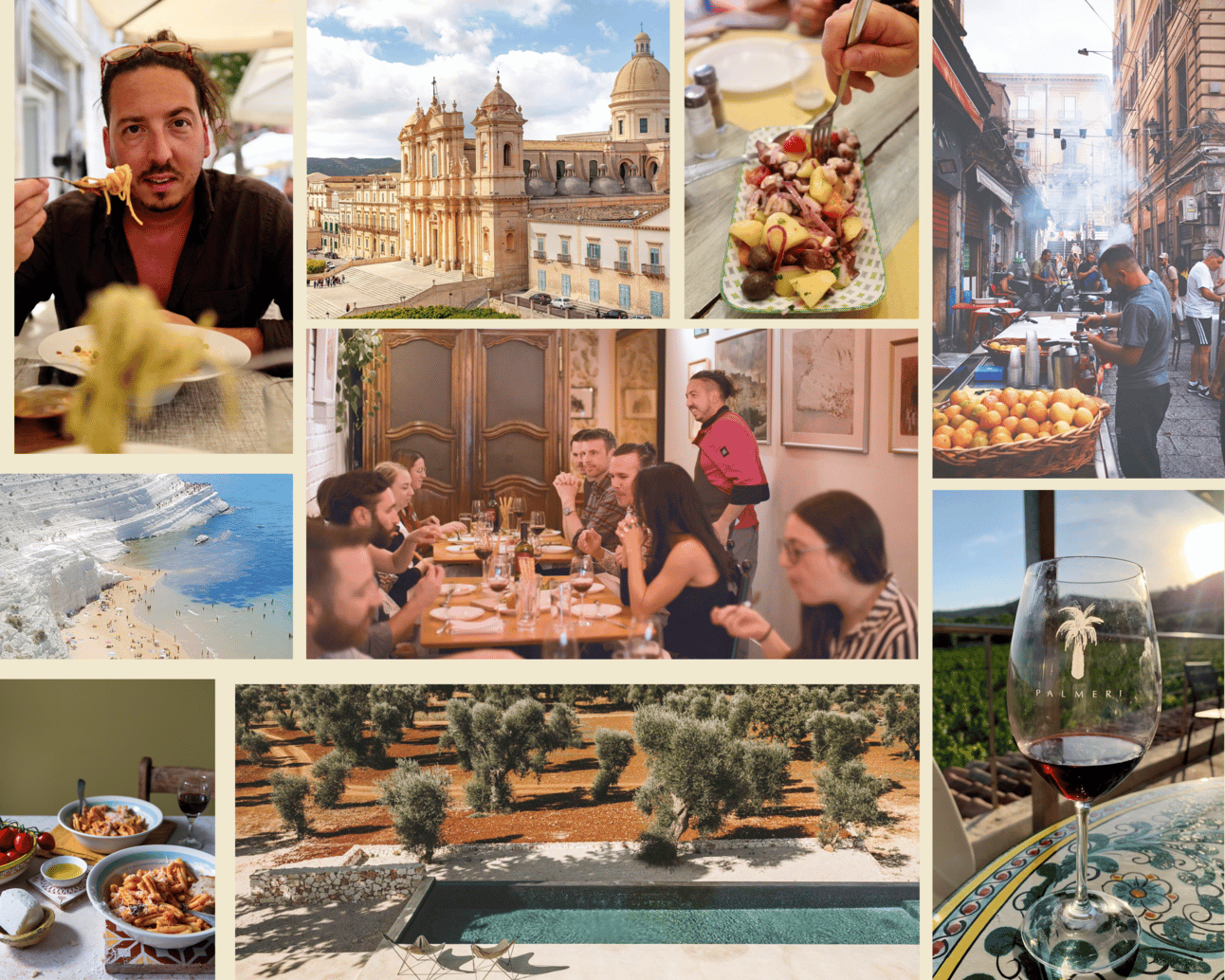 We indulged in the mouth-watering street food flavours at the markets in Palermo, explored the art scene and marvelled at the awe-inspiring architecture and views in Taormina, did some historical sightseeing in Ortigia and we were left in awe by the grandeur of the Baroque masterpieces in Noto, Ragusa & Marzamemi. We also toured backstage at Teatro Massimo and even managed to squeeze in a full beach day at Isola Bella, Vendicari Nature Reserve & Mondello! We established connections with local food and wine producers making sure we will see in person how olive oil is made and taste amazing Sicilian wine varieties.
